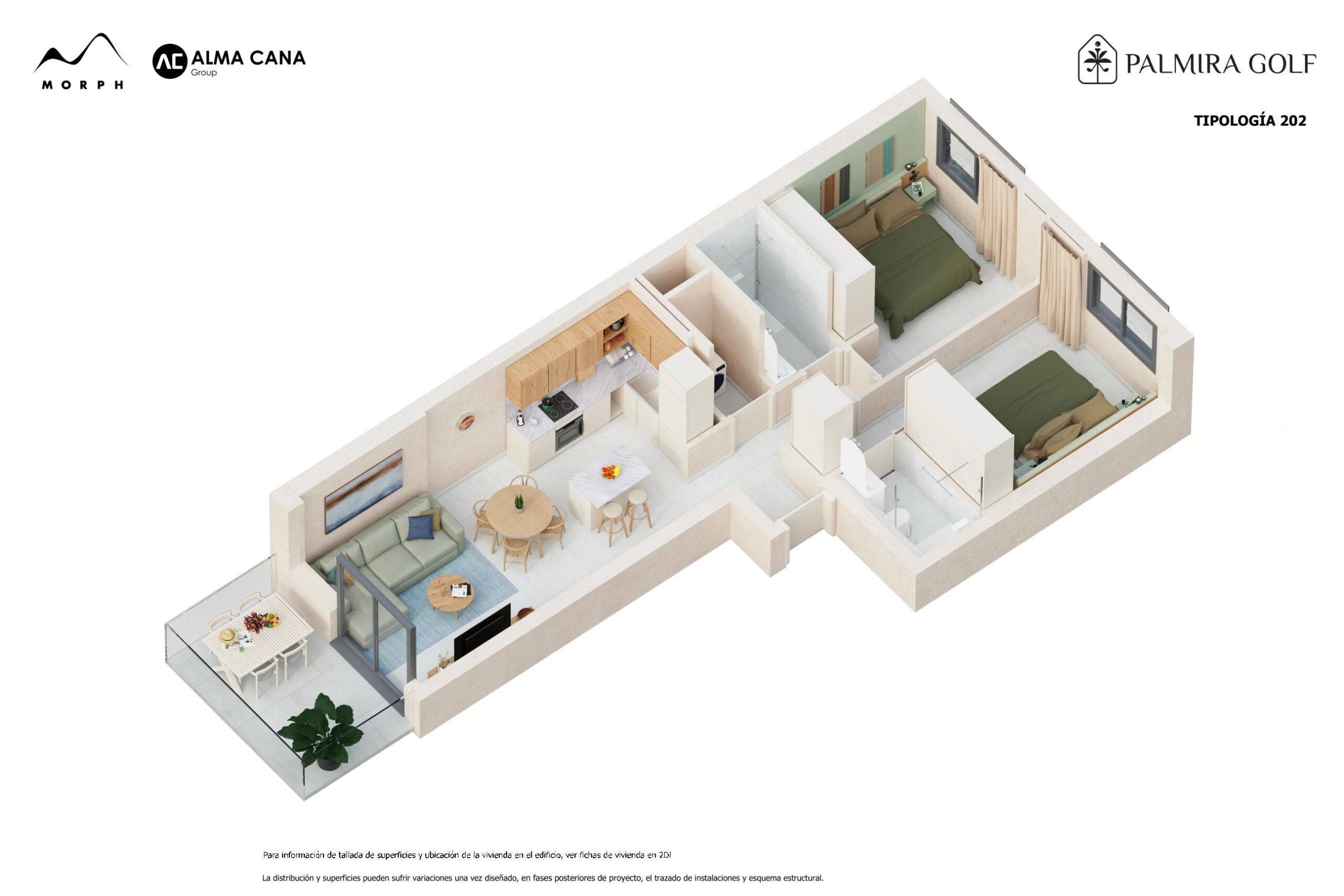 Apartment Typ B: Zwei Schlafzimmer, 2 Badezimmern, 73,60m² Wohnfläche, Balkon 25,54m² für 299.000 US Dollar